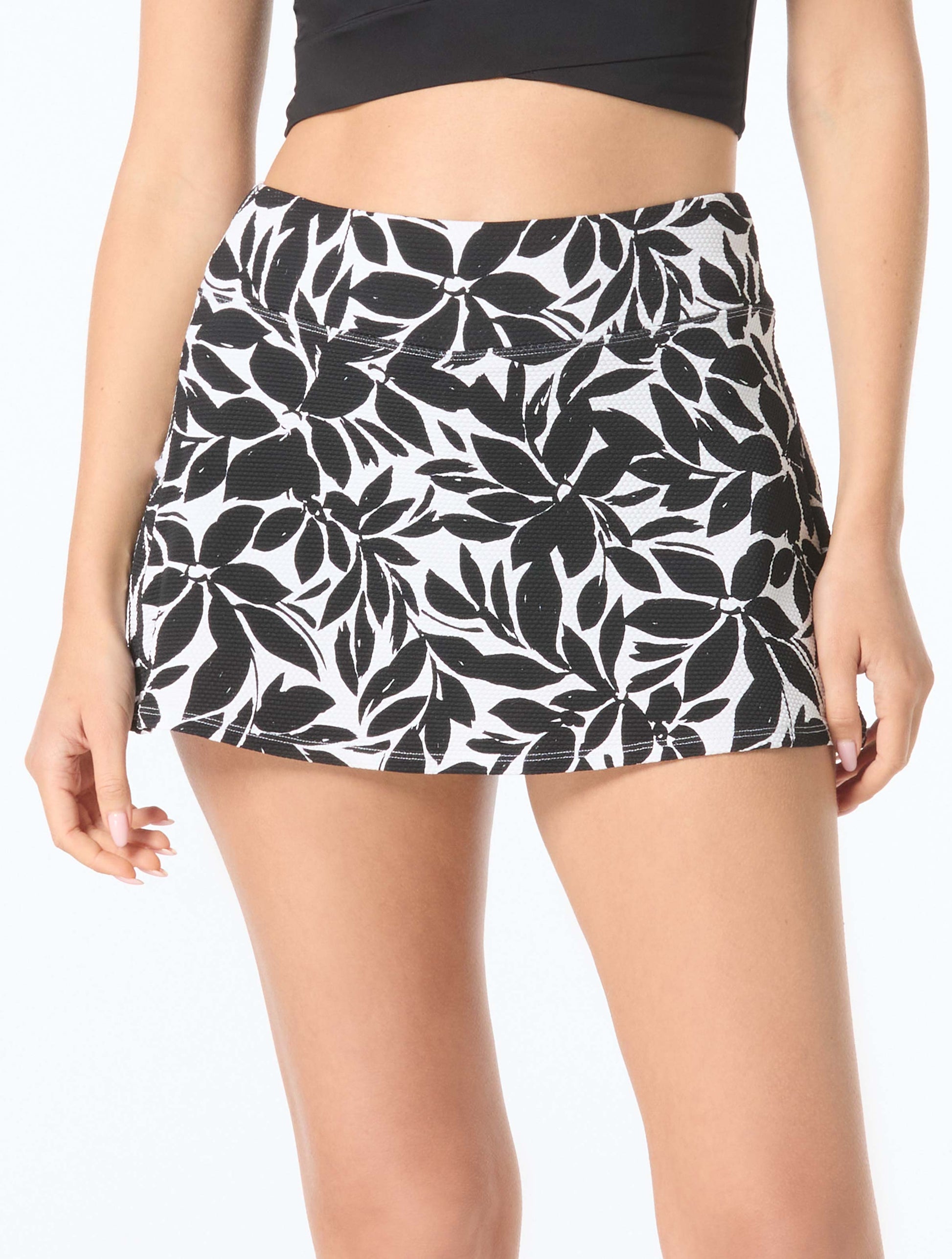 Feel confidently covered in this flattering floral swim skirt with a no dig waistband and comfortable shorts underneath. A functional zippered pocket provides room for cash or a key, no purse needed! Soft, textured, honeycomb fabric elevates your swim style.