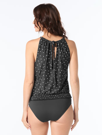 Coverage in a chic way. This polka dot print tankini top provides a looser fit that flatters and doesn't hug your midsection. Pair it with a coordinating print or solid bottom for mixing and matching.