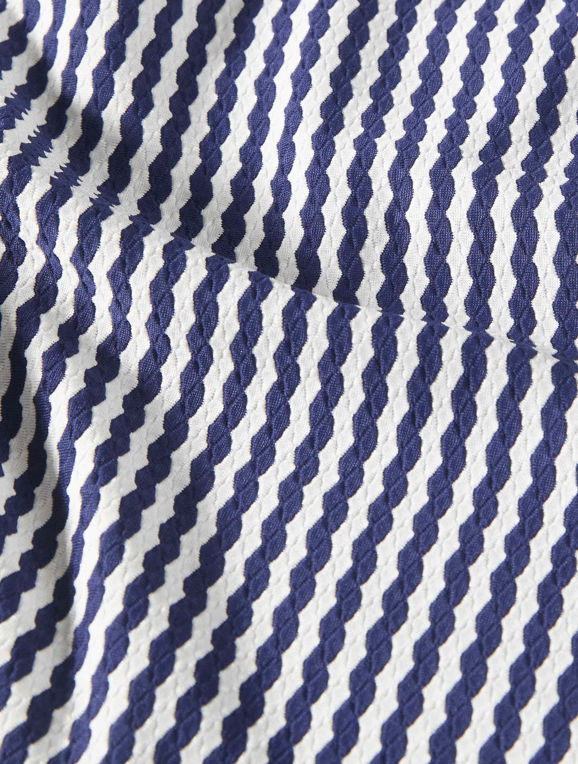 A trendy striped tankini with underwire support and chic keyhole neckline. Soft, textured, honeycomb fabric elevates your swim style. Horizontal stripes are inspired by classic yacht club style.