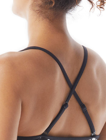 A slim fit tankini offers easy mobility for all your active needs. Wear it with shorts, swim skirts or leggings for just about any sport. A trendy tropical print in a ribbed fabric is inspired by the stunning shores in Aruba. Convertible straps allow you to wear the straps over your shoulders or as a cross back.