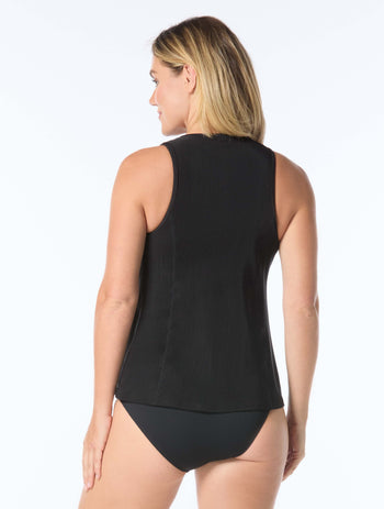 Beach House Sport Racer Zip Front Tankini Top - Wild Calypso