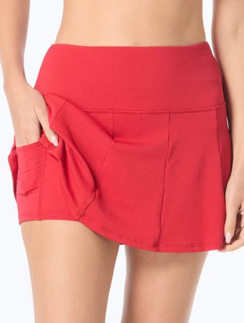 Take a stroll or a swim in the Beach House Swim Olivia Princess Seam Skort. Designed with a textured pique fabric and built in hidden swim shorts and a comfort waistband so you can take this skort for a morning walk, afternoon swim, or evening tennis match. Beach House swimwear is designed with high-end fabrics that bend with you for extra comfort, easy fit and shape retention.