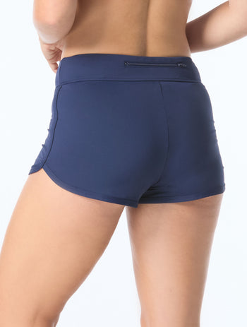 The most comfortable active shorts to go from stride to swim. A mesh panty interior provides breathability for your most active days. A back pocket on the waistband allows you to hold your essentials, no purse needed. Pair these solid swim shorts with an active top, swim tankini or rashguard for any sport or sunny day.