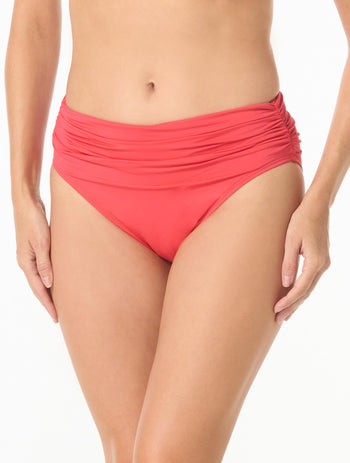 Soft shirring gives the Carmen Marc Valvo Shirred Bikini Bottom an especially smooth, flattering fit. Mix and match with coordinating solid tops or playful prints to keep your swimwear game fresh and ever changing.