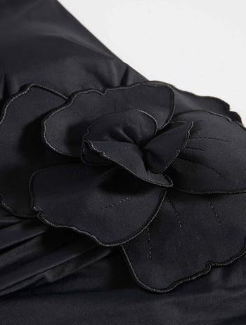 • Floral applique trim at side waist sash