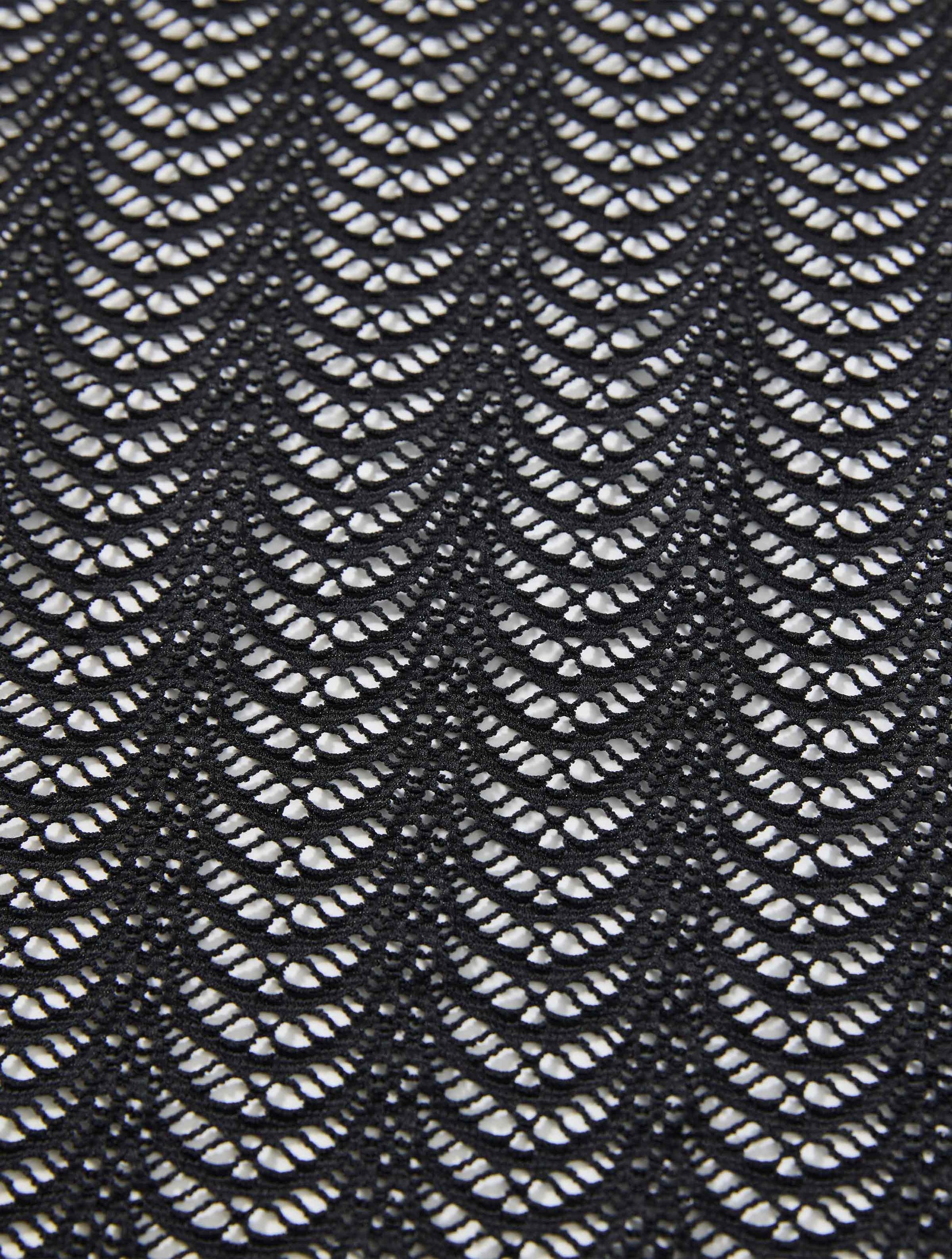 A bandeau one piece is accented with an oversized ruffle trim along the top. Customize your look with detachable, adjustable straps for additional support. Seashell inspired crochet is soft to touch yet water friendly so you can jump into the ocean in style. Patented shapemaker lining smooths your curves and compliments your mid section with comfortable compression