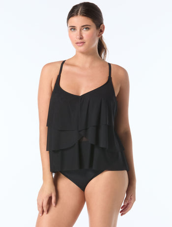 Coco Reef Lotus Ruffle Bra Sized Underwire Tankini Top - Classic Solids