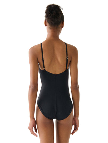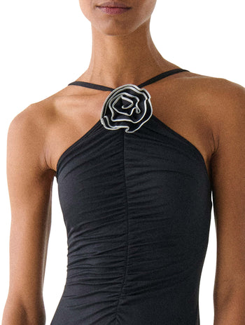 This radiant, solid one piece swimsuit features a contrast rosette detail on the neckline so you can rock this rosy style on the beach or pair it with denim for a night out like a rock star!