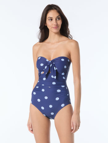kate spade new york Bandeau Tie Front One Piece Swimsuit - Downtown Dot