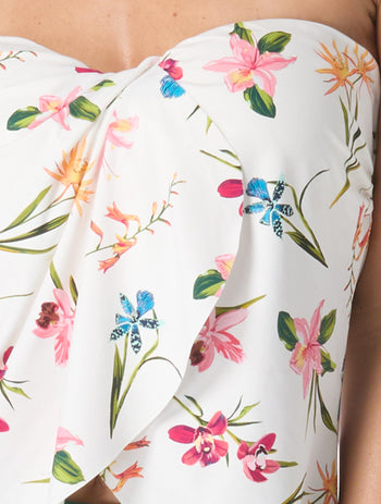 A little extra coverage, a lot of style. This tankini top features a flattering gathered overlap at the front. A garden inspired print adds a splash of color and charm. Wear this swim tankini strapless or add the adjustable strap for extra support.