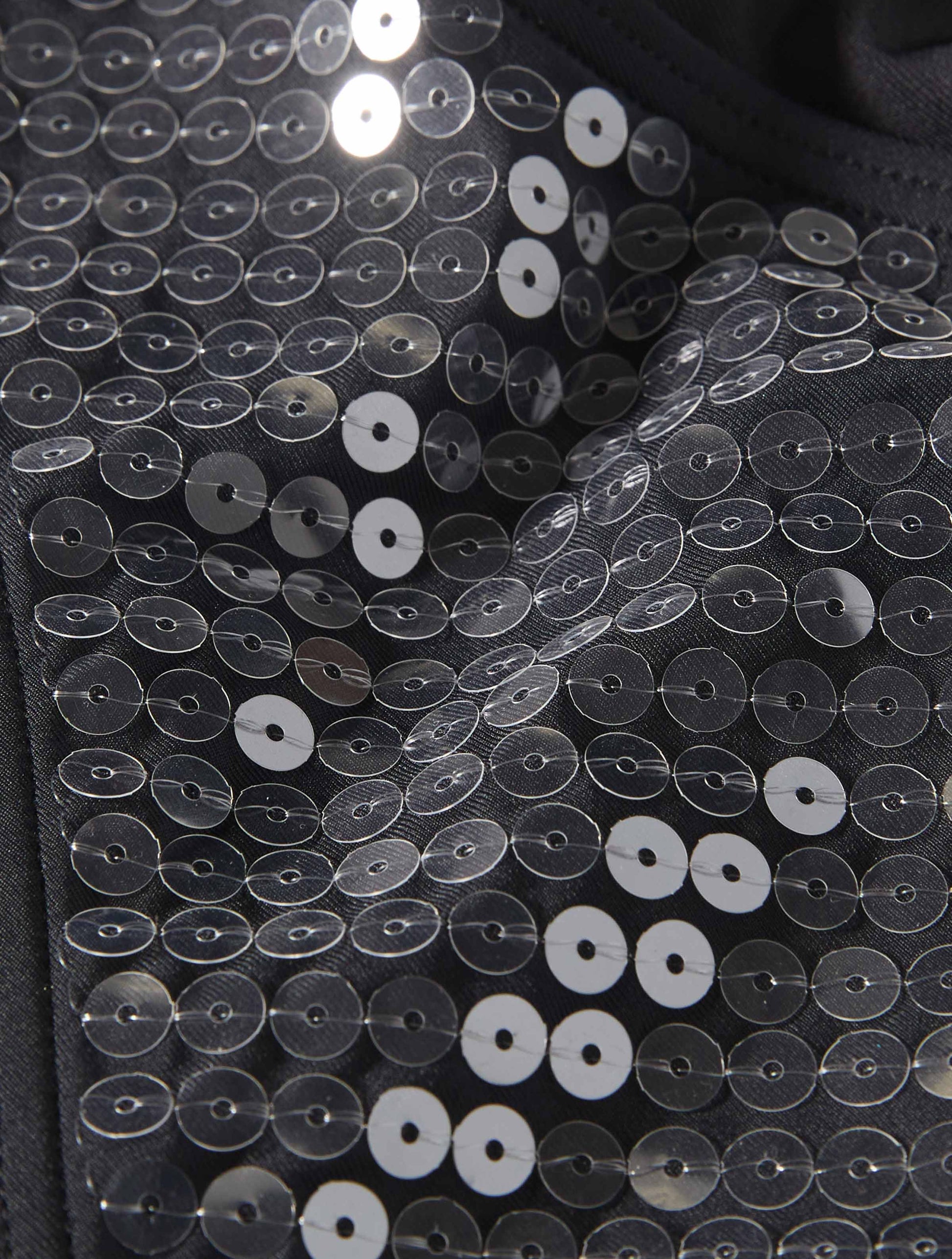 Add some glitz and glam to your swim style with this sequin string bikini top. Adjustable tie straps at the neck and back offer a customized, comfortable fit.
