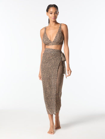 Jet set to the beach bar in this animal print pareo. A wrap tie with logo hardware accents the waistline. Just add sunshine and a bikini for a head to toe luxe look.